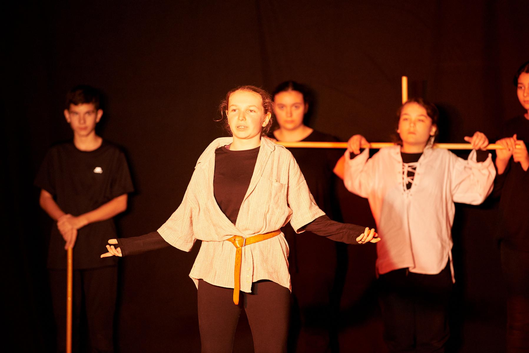 Die jungen SchauspielerInnen unserer ersten Kulturschulklassen stürmten mit Schillers „Bürgschaft“ und „Handschuh“ kraftvoll die Bühne.